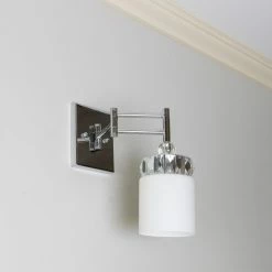 Ideal for your hallway, entryway, or bedroom, the Decor Therapy Cora WL1159 Wall Sconce adds gentle illumination and a subtle touch of contemporary glamour. This wall sconce features a classic white cylinder shade accented with gleaming glass crystals.