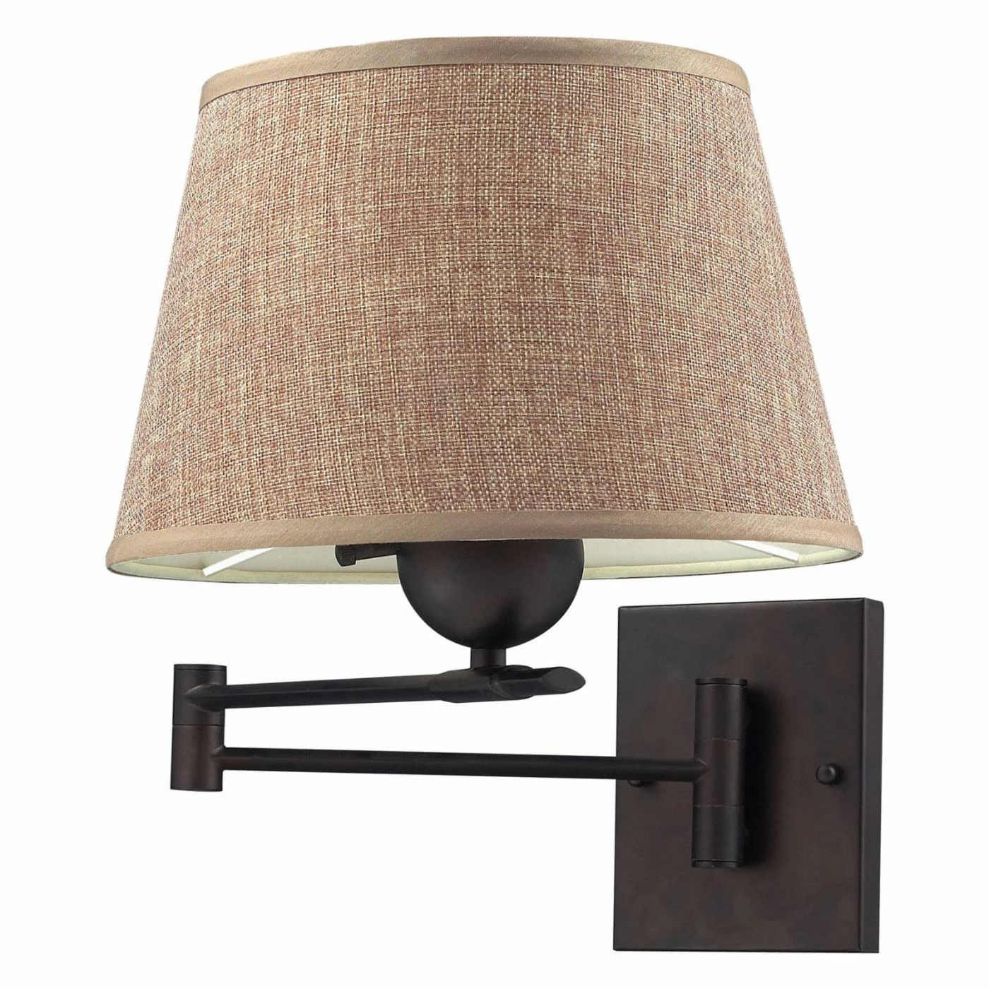 Able to swing away against the wall, the Elk Lighting Swingarms 10291/1-LED Wall Sconce lets you add extra light to a desk or seating area when you require it and conserve space when you don’t. The sconce provides soft, energy-efficient light with an LED bulb diffused by a beige fabric shade. Finished in aged bronze, the fixture adds warm color to interiors.