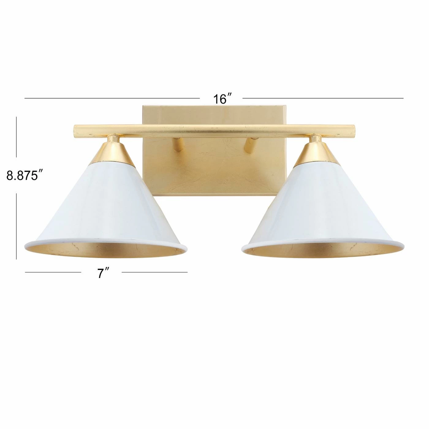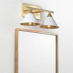 The JONATHAN Y JYL Yvette 2 Light Wall Sconceβs warm gold and fresh white tones lend bright luxury to your space. This wall sconce features a frame of strong metal, with an arm suspending the light away from the wall. Two 25-watt incandescent bulbs give off a warm and inviting glow.