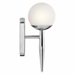 The Kichler Jasper 45580 Wall Sconce gives you beautiful, diffused light with modern touches to instantly update your space. A white glass globe sits on a tapered post, giving you modern design with a soft , organic feel. This wall sconce requires one 50-watt incandescent bulb (included).