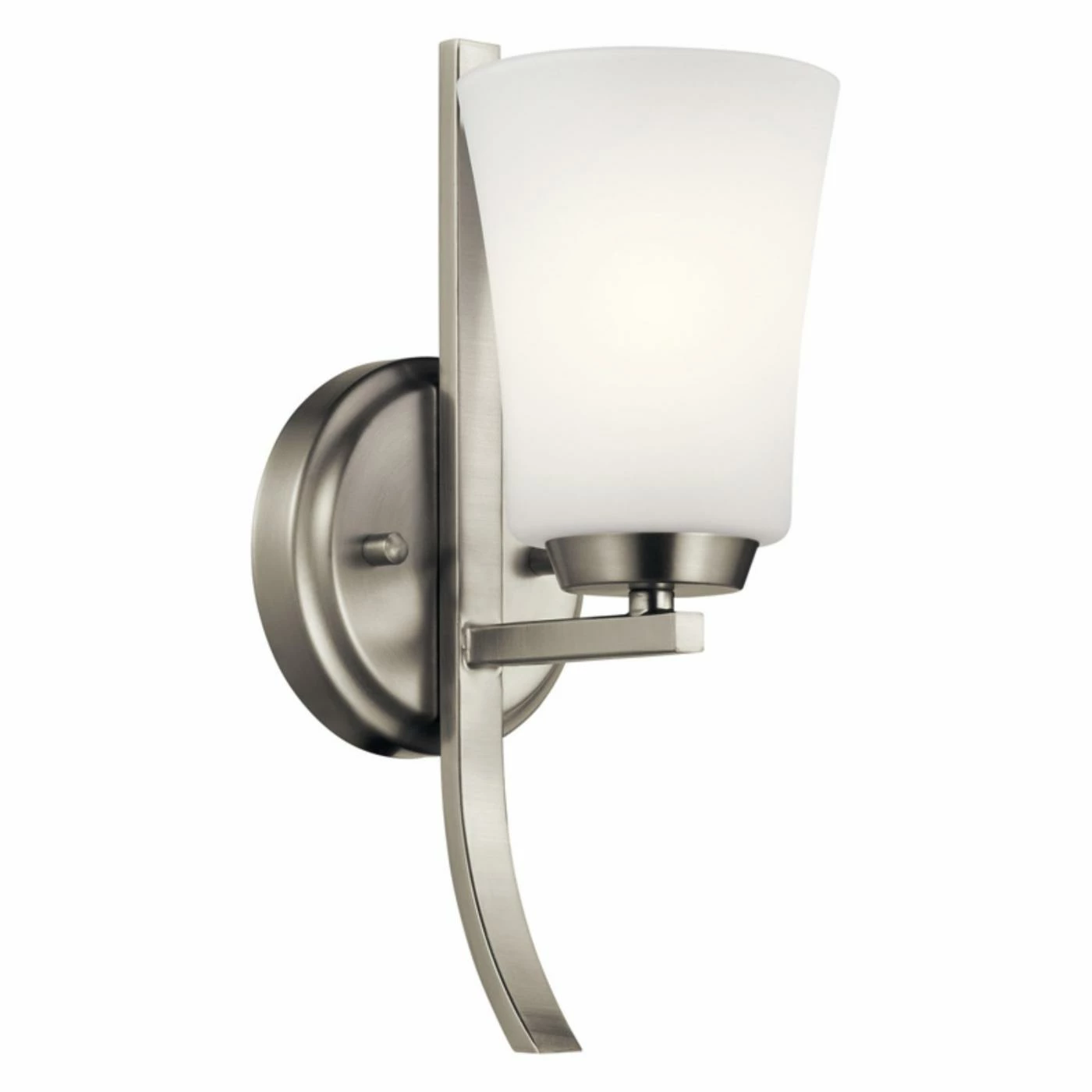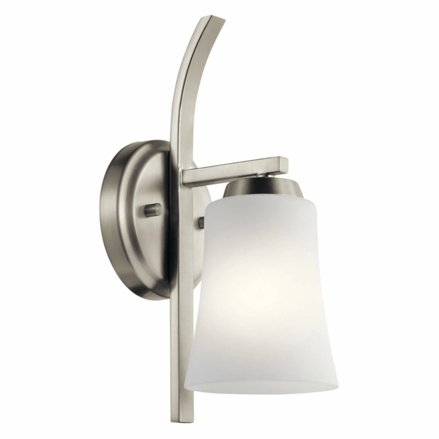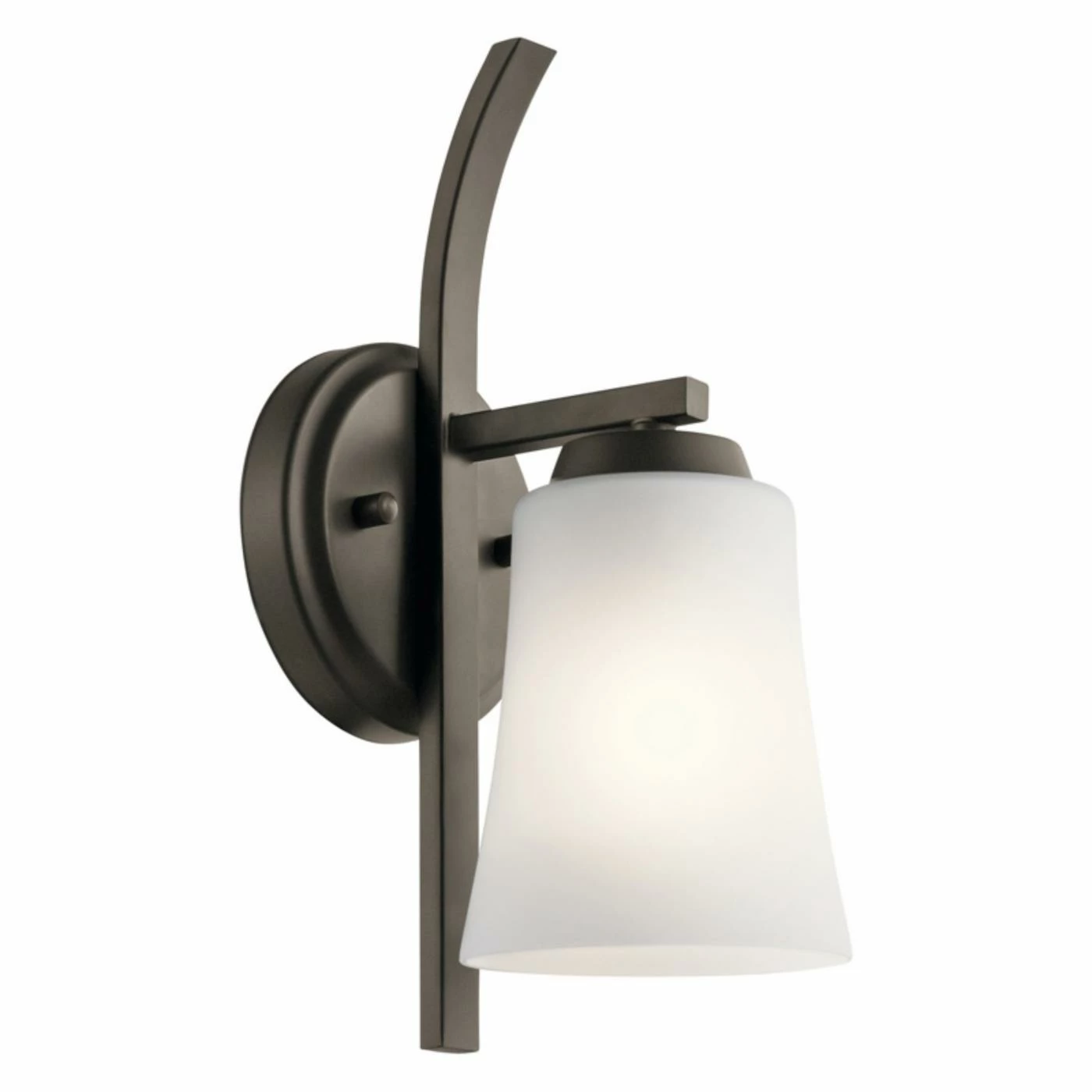 Curved style lines provide a soft touch to the Kichler Tao 45888 Wall Sconce. This wall sconce boasts a flared shade with a frosted finish for a soft diffusion of light.