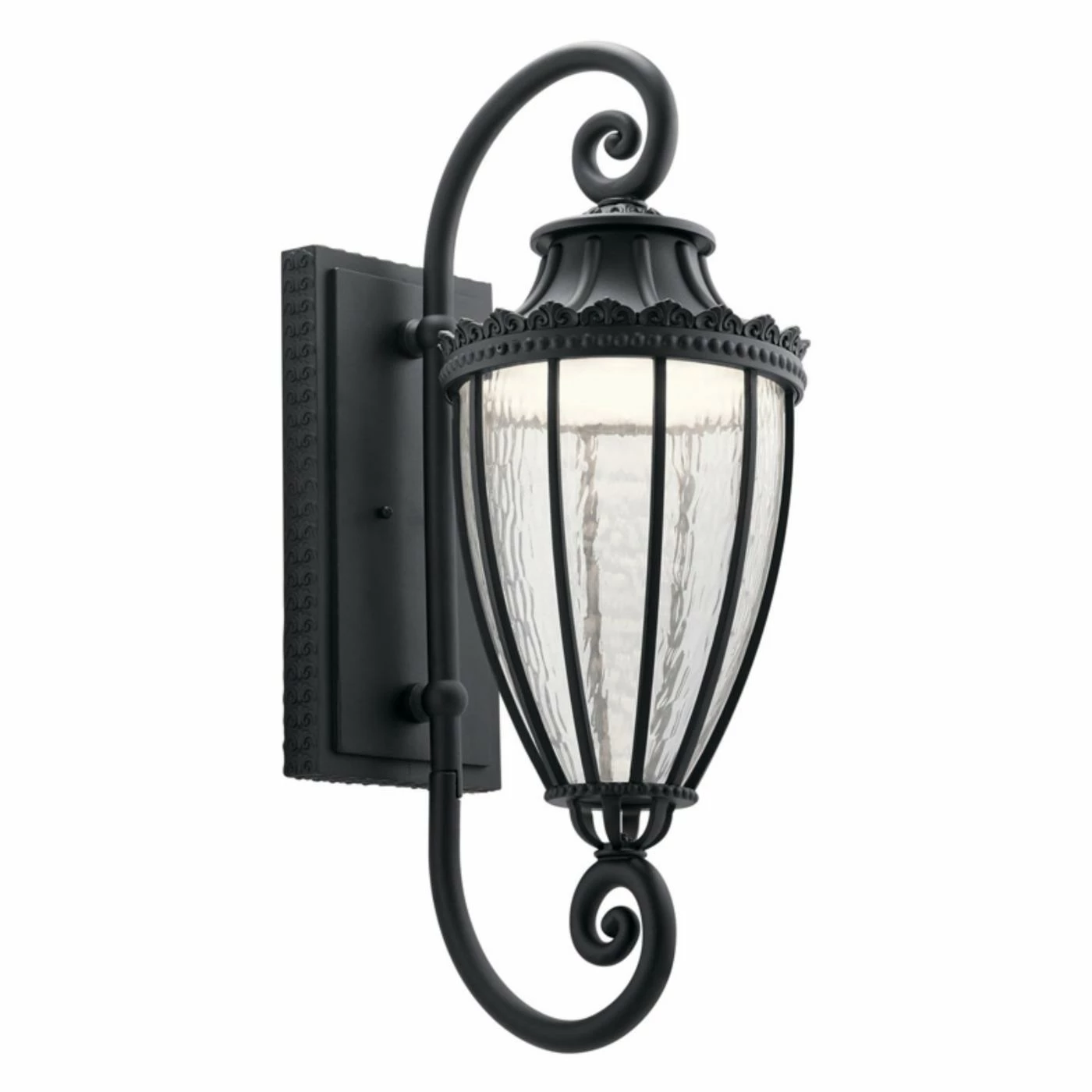Brighten up your outdoor space with the Kichler Wakefield 49753 Outdoor Wall LED Light. This attractive wall light features ornate detailing for a regal look. The clear rain glass shade adds vintage character, while the LED bulb (included) casts a pleasant glow.