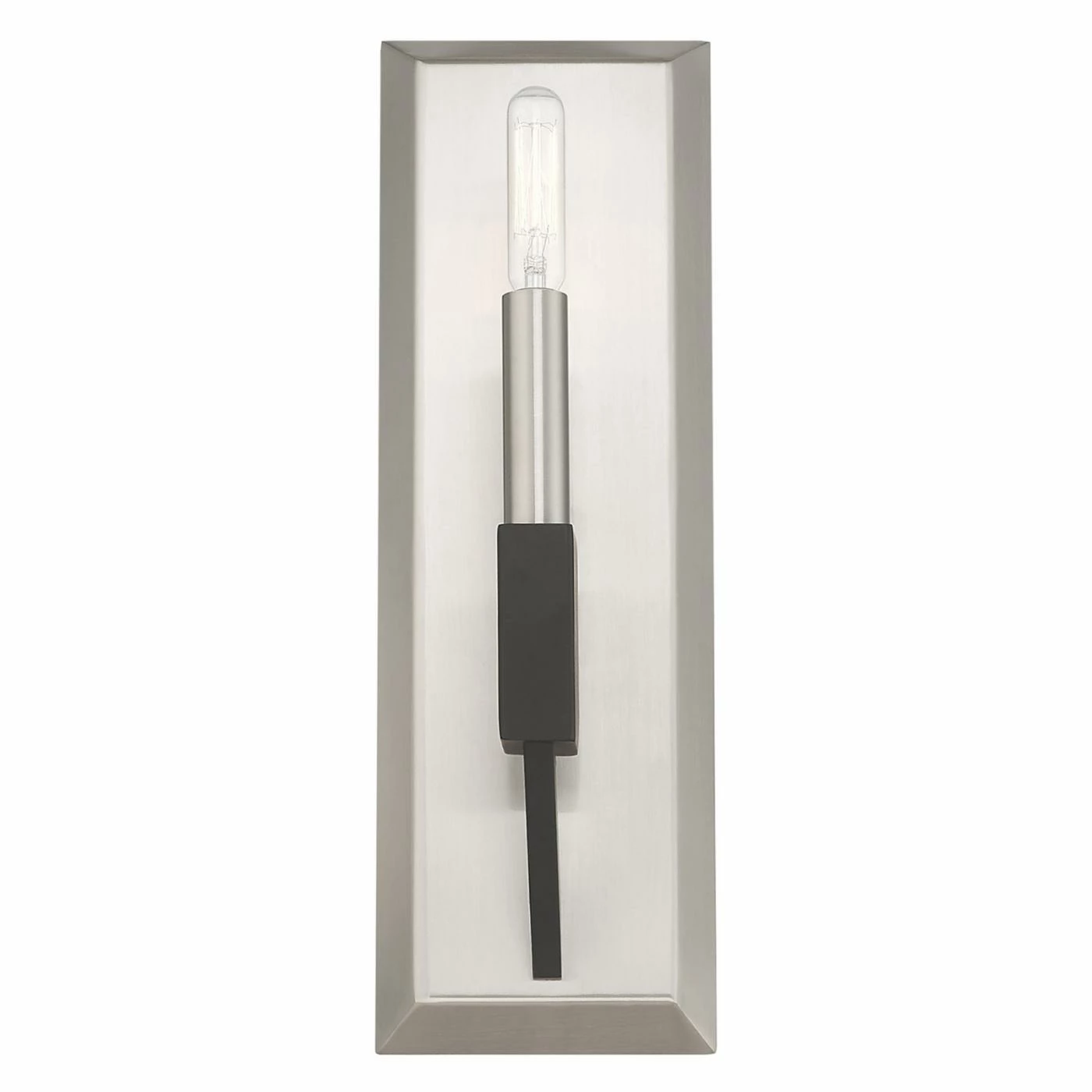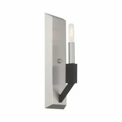 Update your lighting by including a Livex Lighting Barrett 1 Light 51161-91 Wall Sconce. Mounted flush against the wall, the exposed bulb, brushed nickel frame and black accents offer an industrial feel. Used singly or in pairs, this sconce takes a traditional light source and updates it to suit a modern look.