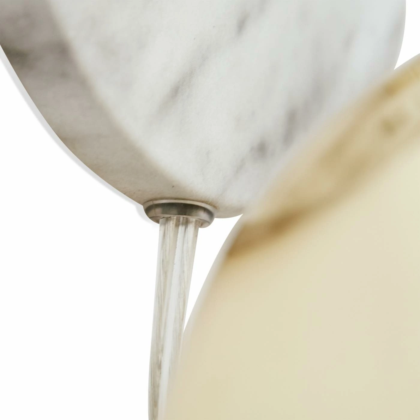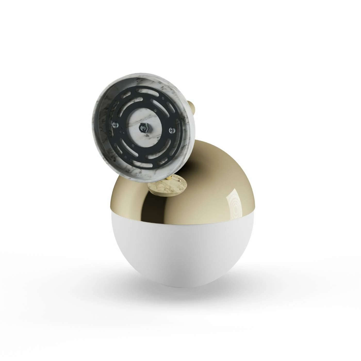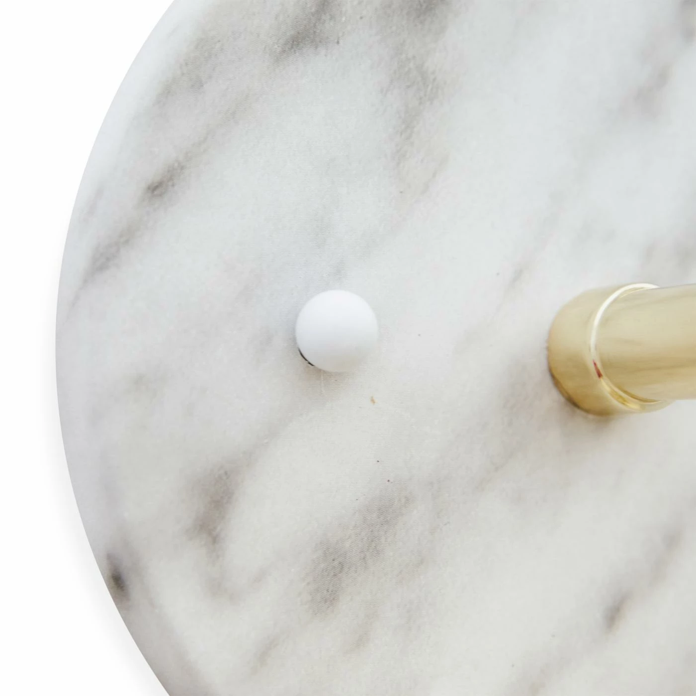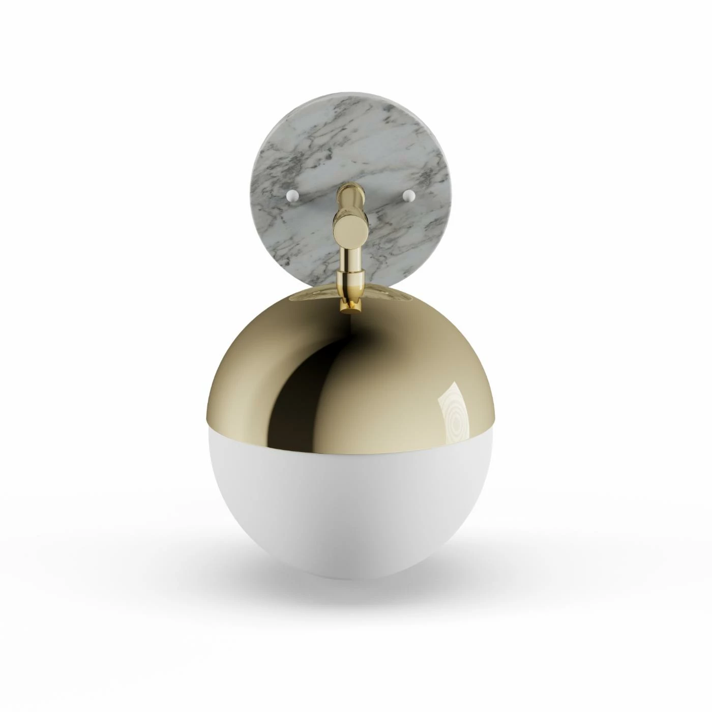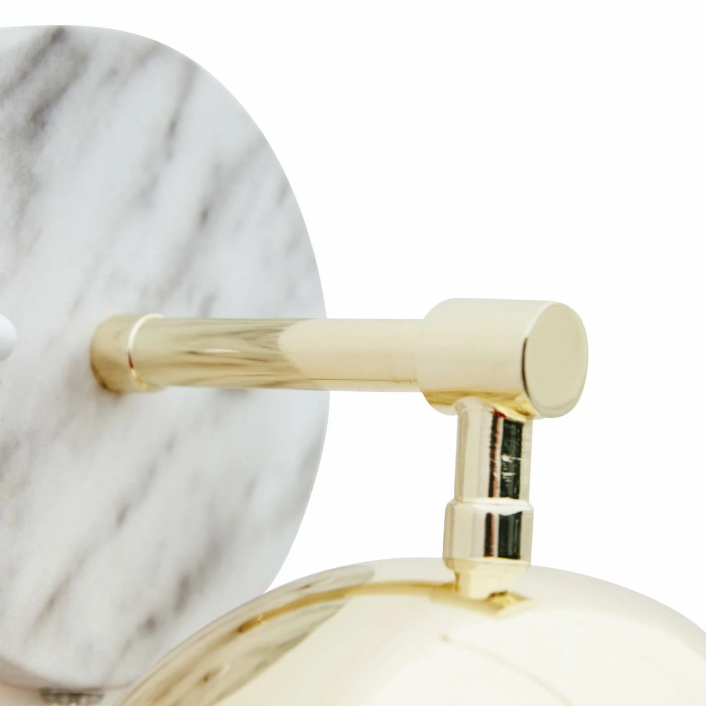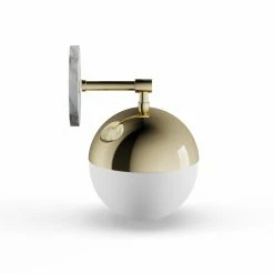 Either displayed alone in your hallway or as a pair on each side of your bed, the MoDRN Neo Luxury Globe Wall Sconce brightens your space with an opulent look. This wall sconce features a round faux marble base that’s equipped with a rotary switch for easy operation. A simple, slim arm supports a white glass globe shade with a metal cap in a metallic gold finish. This lamp is conveniently equipped with a 7-watt LED bulb for operation.