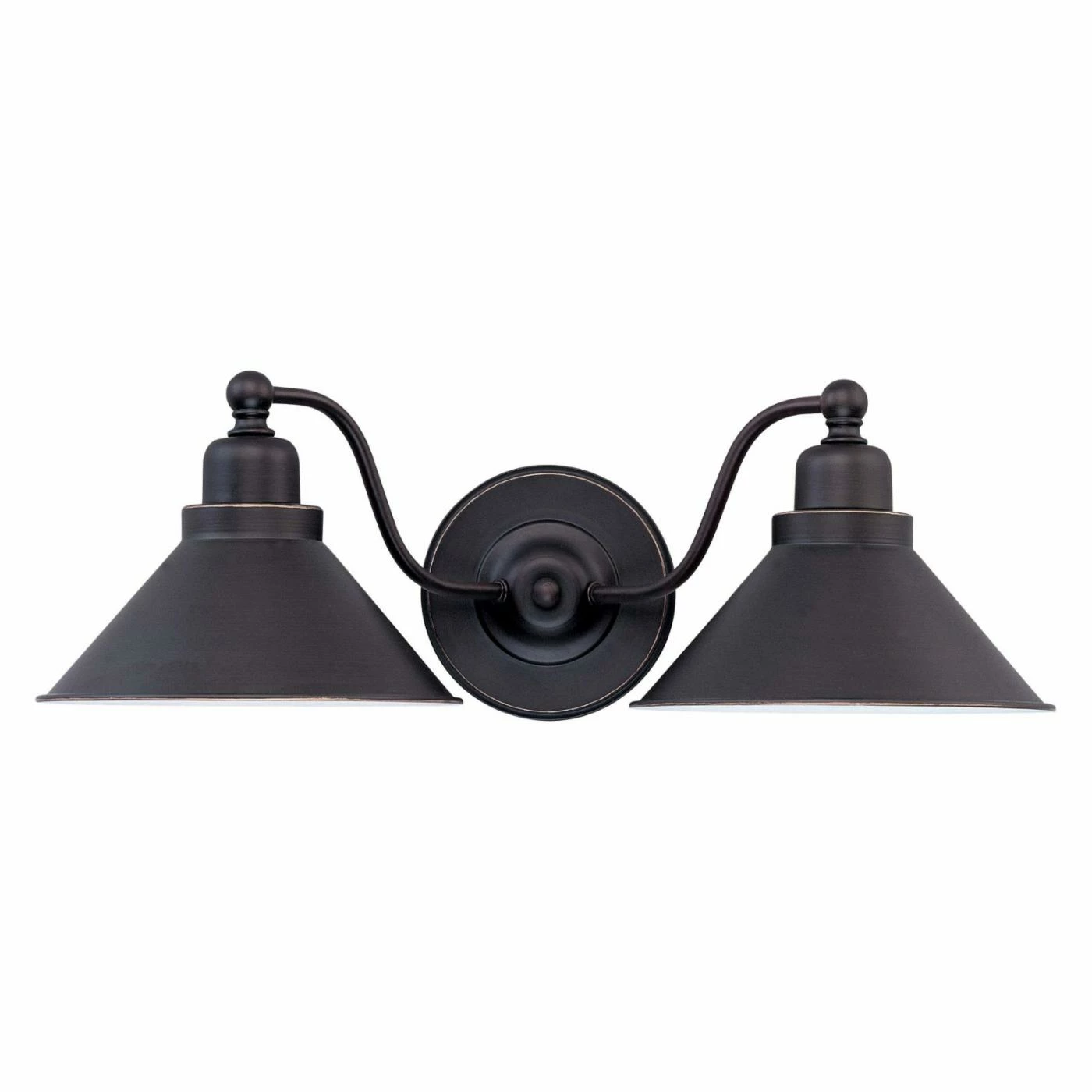 Create your own interpretation of classic with the Nuvo Bridgeview 60/1711 2-Light Wall Sconce – 20W in. – Mission Dust Bronze. This wall-mount fixture features a dark oiled finish and metal shades. The silhouette is simple and clean with classic details.