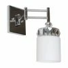 A modern sensibility in the classic idea of a sconce is what the Vaxcel Capri 1-Light Vanity Light with Excavation Glass – 5.5W in. Black Walnut brings to your home. This metal-bodied fixture can be mounted in a downward- or upward-facing position, but either way will let you fill your space with a warm light from the 100-watt, medium base bulb that sits within the angular shade of excavation glass.