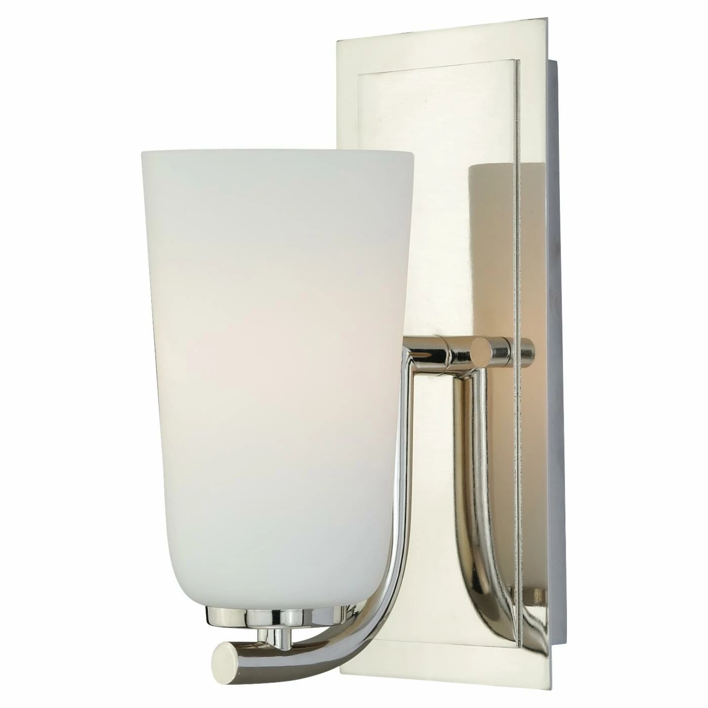 The refined and glamorous Vaxcel Napa W0116 Wall Sconce boasts a rectangular backplate and curved arm in a deluxe polished nickel finish. A premium frosted opal glass shade diffuses light and casts an inviting glow. This wall sconce requires one 100-watt bulb, not included.