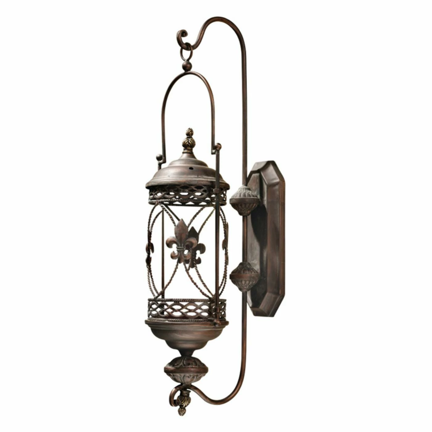 Bring the south of France to your setting with the vintage-inspired Design Toscano Les Champs Toulon Hanging Pendant Lantern. This lantern features classic fleur-de-lis accents and a full metal construction. The weathered copper finish is sure to pair easily with any decorative plan. Just add your favorite candle to add ambient lighting to your space.