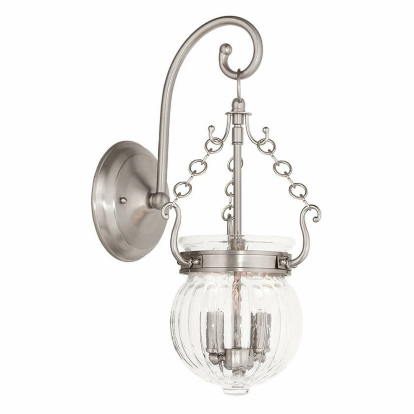 The two candle style lighting of the Livex Lighting Everett 50501 Wall Sconce features elegant curves and chain accents. Requires two 60-watt candelabra base bulbs (not included).