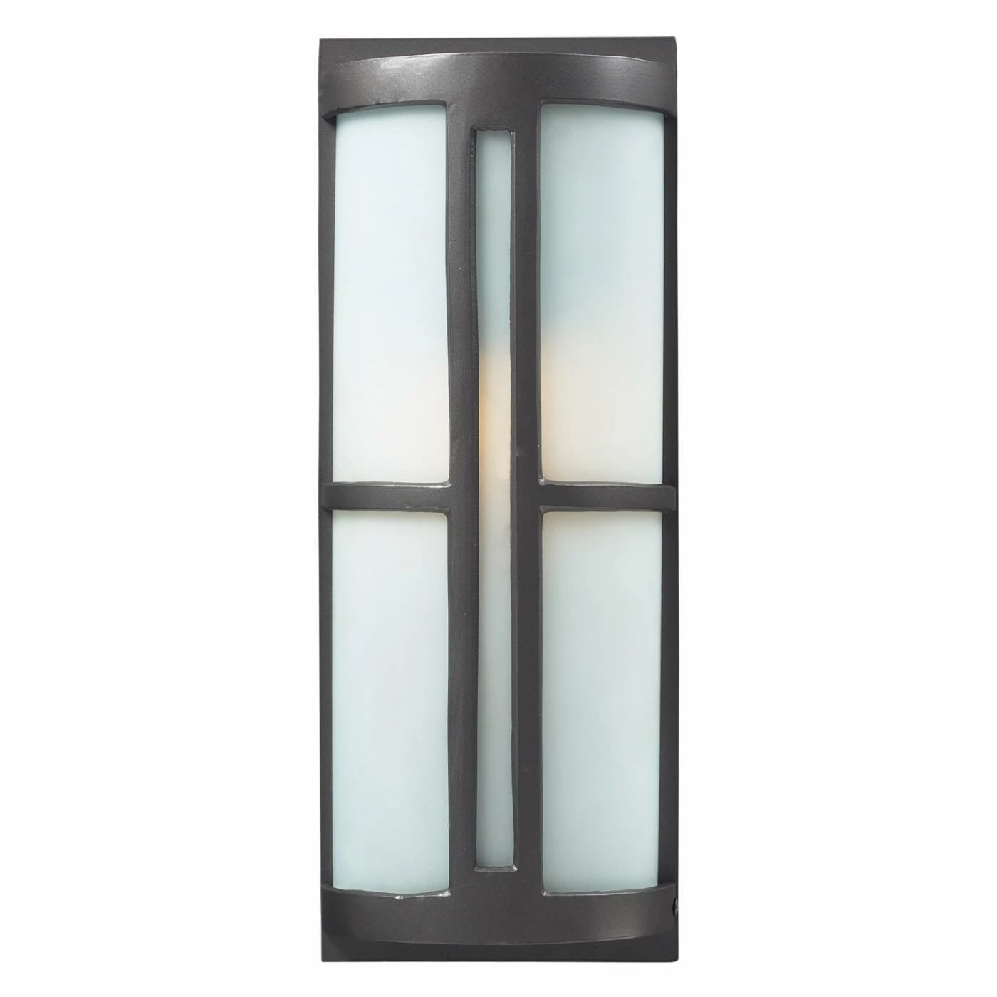Distinctly modern with an inspired sense of design, the ELK Lighting Trevot 4239 Outdoor Sconce Graphite draws attention to any setting. Its strong geometrically designed base holds a half-cylindrical frosted glass shade encased in a metal edging. Your choice of a single or double 60-watt bulb provides ample illumination to your outdoor decor. Its warm granite finish gives this sconce a look that invokes contemporary images that perfectly complement a transitional decor style.