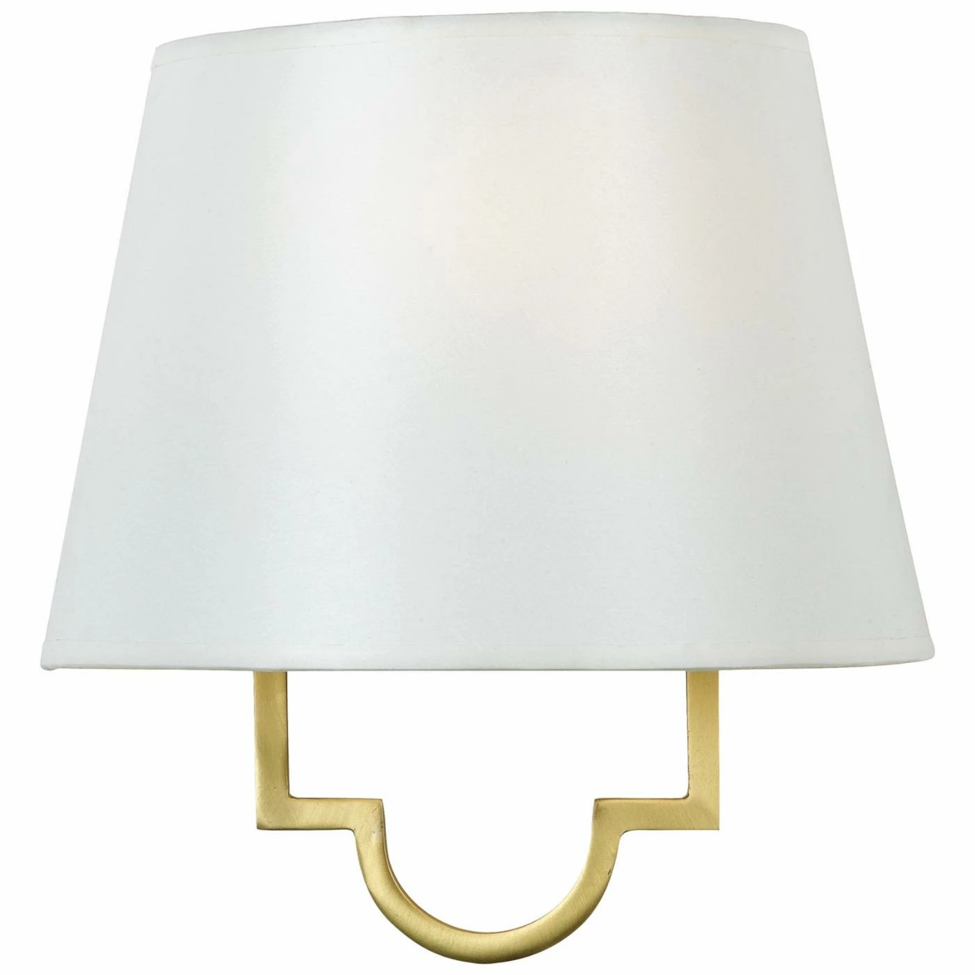 Simple and elegant, the Quoizel Millennium One Light Pocket Sconce reflects your unique sense of style. This sophisticated wall-mounted fixture bridges the gap between the classic and modern; it has been designed and crafted with thoughtful attention to detail. The brass frame features a gleaming gallery gold finish that complements the white parchment fabric shade. Ideally suited to contemporary-style decor, this light will make a welcome addition to your bathroom, bedroom, dining room, or hallway. It requires a single 60-watt B10 candelabra base light bulb, which is not included. This wall sconce will illuminate your home in style with a warm and inviting glow. Other coordinating fixtures are available for purchase separately.