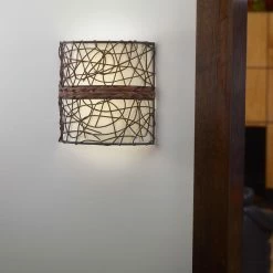 Need some extra light in your hallway, bedroom, or porch? The Its Exciting Lighting Catalina Barrel Wall Sconce is an easy-to-install wall light that needs no wiring work to add anywhere in your home. The piece features five LED bulbs, providing wide-reaching warm light, softened by the frosted shade. The piece mounts just like a picture and features a 24-hour memory timer. The frame is made from tasteful wicker with a natural deep brown finish. A manual on/off switch is concealed behind the shade. Unit requires 6 AA batteries (not included) and can run for up to 200 hours.
