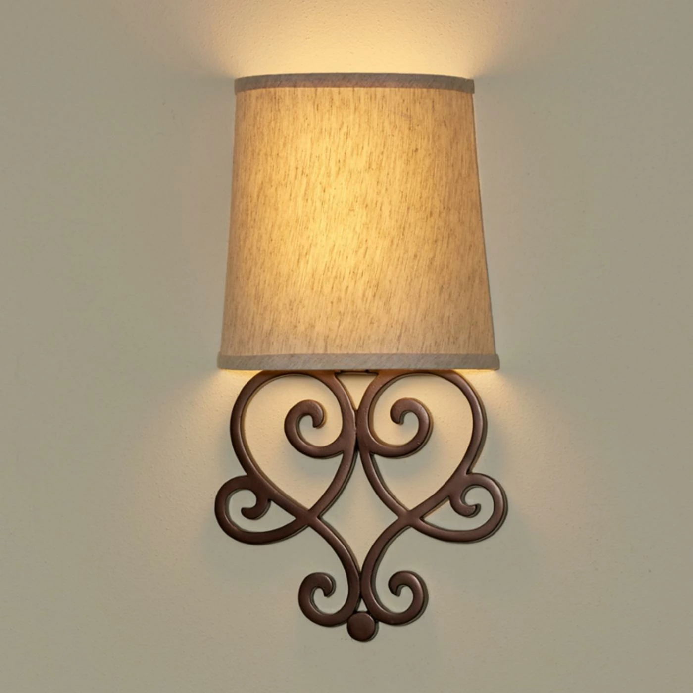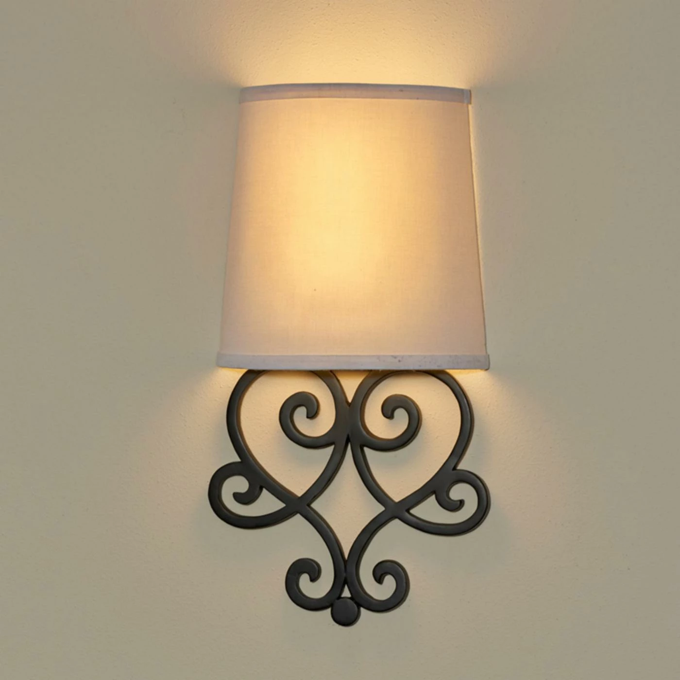 Provide a charming light source that’s always there when you need it with the Its Exciting Lighting London Barrel Wall Sconce. This wall sconce features a scrolled, heart-shaped base made from tough poly-resin that mounts easily to your wall without any wiring or other electrical connections. Bright white LED bulbs come concealed behind the fabric shade, featuring a push-button on/off switch. The lights feature a 4-hour automatic timer and a 24-hour memory timer. Six AA batteries are required to power the light (not included).