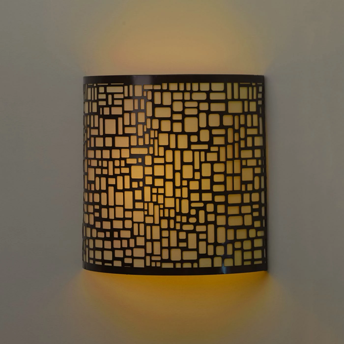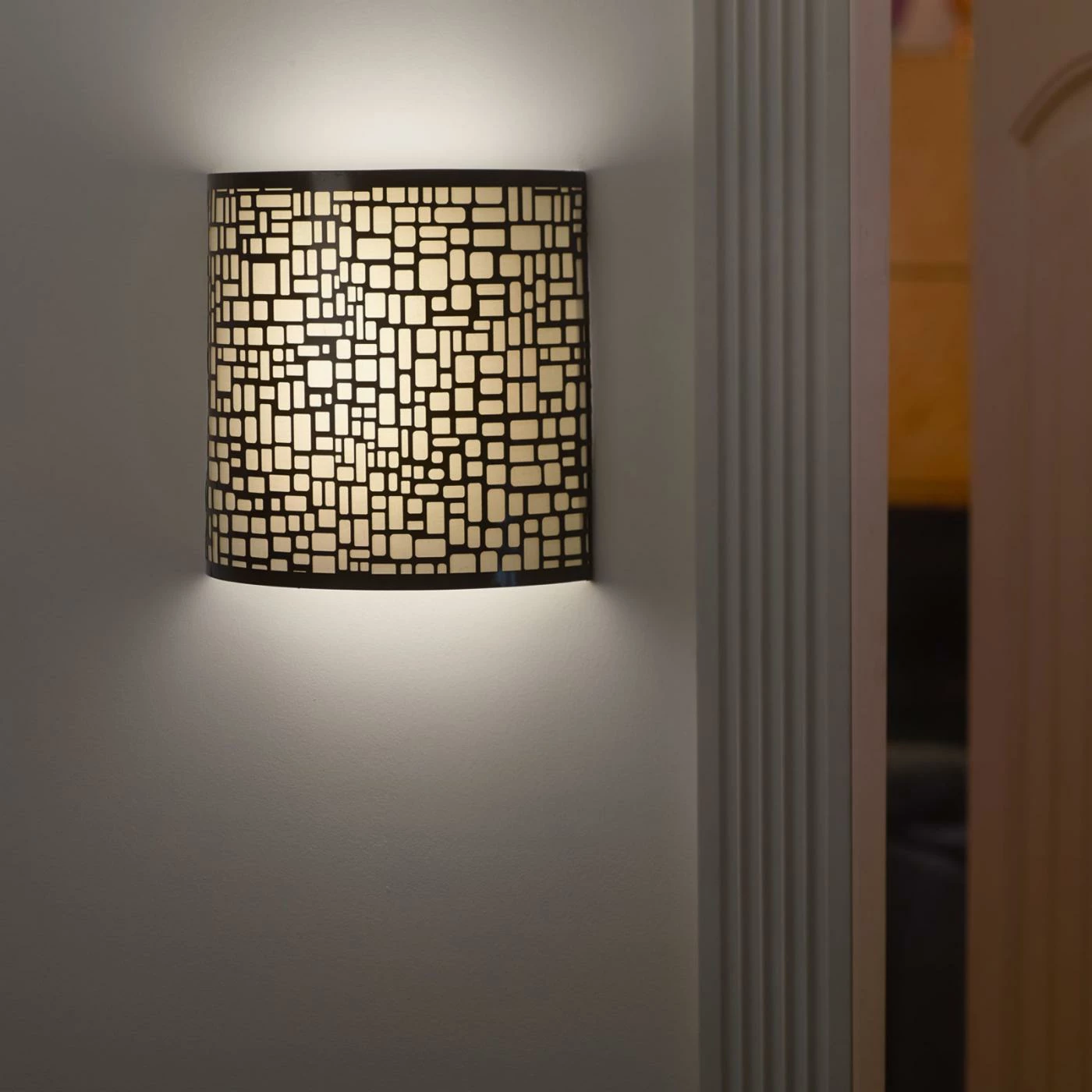 The Its Exciting Lighting London Barrel Wall Sconce is an essential addition to any home for emergency and decorative purposes. This wall-mounted light operates on 6 AA batteries (not included), meaning it’s always ready even when the power’s out. Its durable frame is made from metal with a neutral brown finish and a picture-style hanging design. Frosted acrylic comprises the shade, topped by a metal abstract square pattern overlay. Five white LED bulbs are built into the design, controlled by an on/off switch concealed behind the shade.