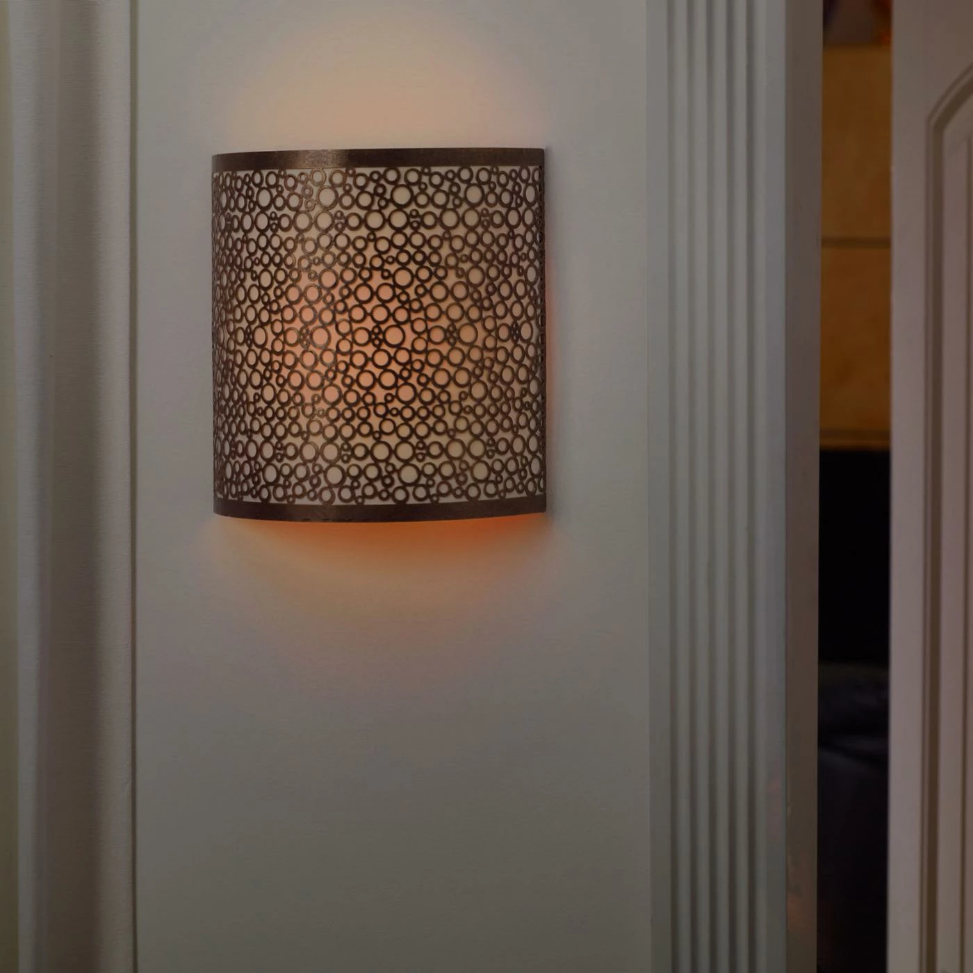 Make sure you always have a reliable source of interior lighting even when the power grid is offline thanks to the Its Exciting Lighting Olita Barrel Wall Sconce. This wall sconce hangs anywhere, providing light to dimmer rooms or an emergency source to your most-used areas. The durable frame is made from metal with a circular overlay pattern. The interior shade is made from frosted acrylic-like glass. Five LED lights are built into the design, featuring a convenient on/off switch behind the shade. The piece mounts to your wall without needing any wiring or electrical work. Requires 6 AA batteries (not included).