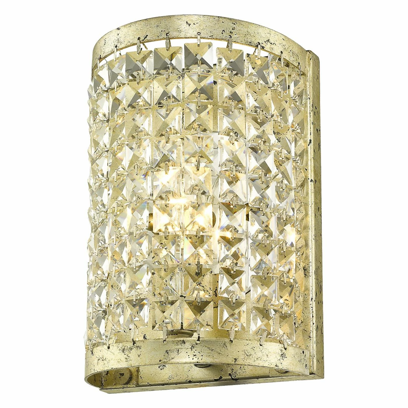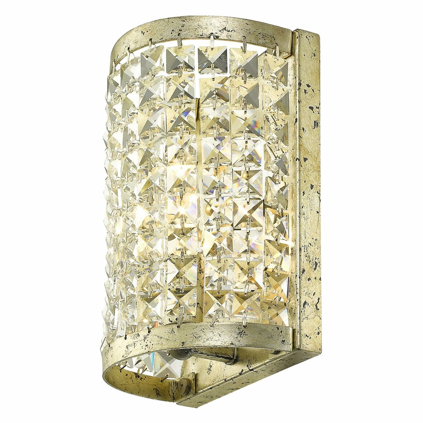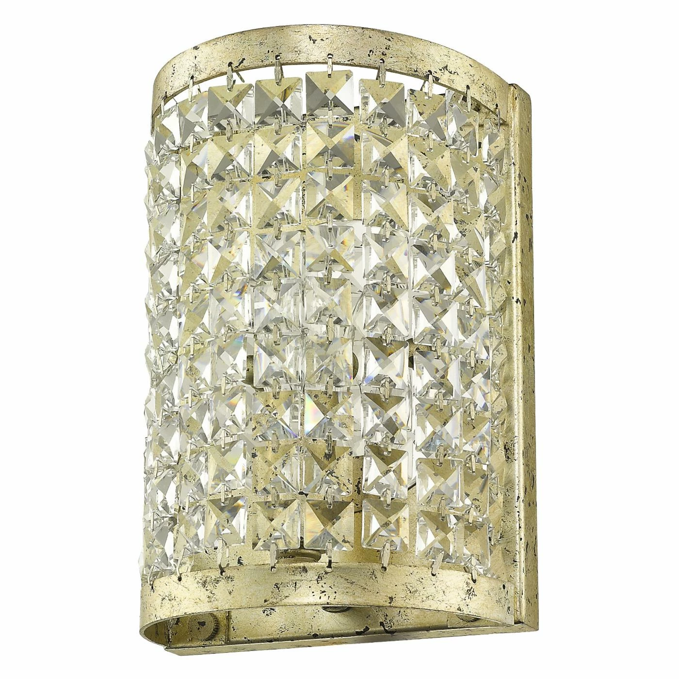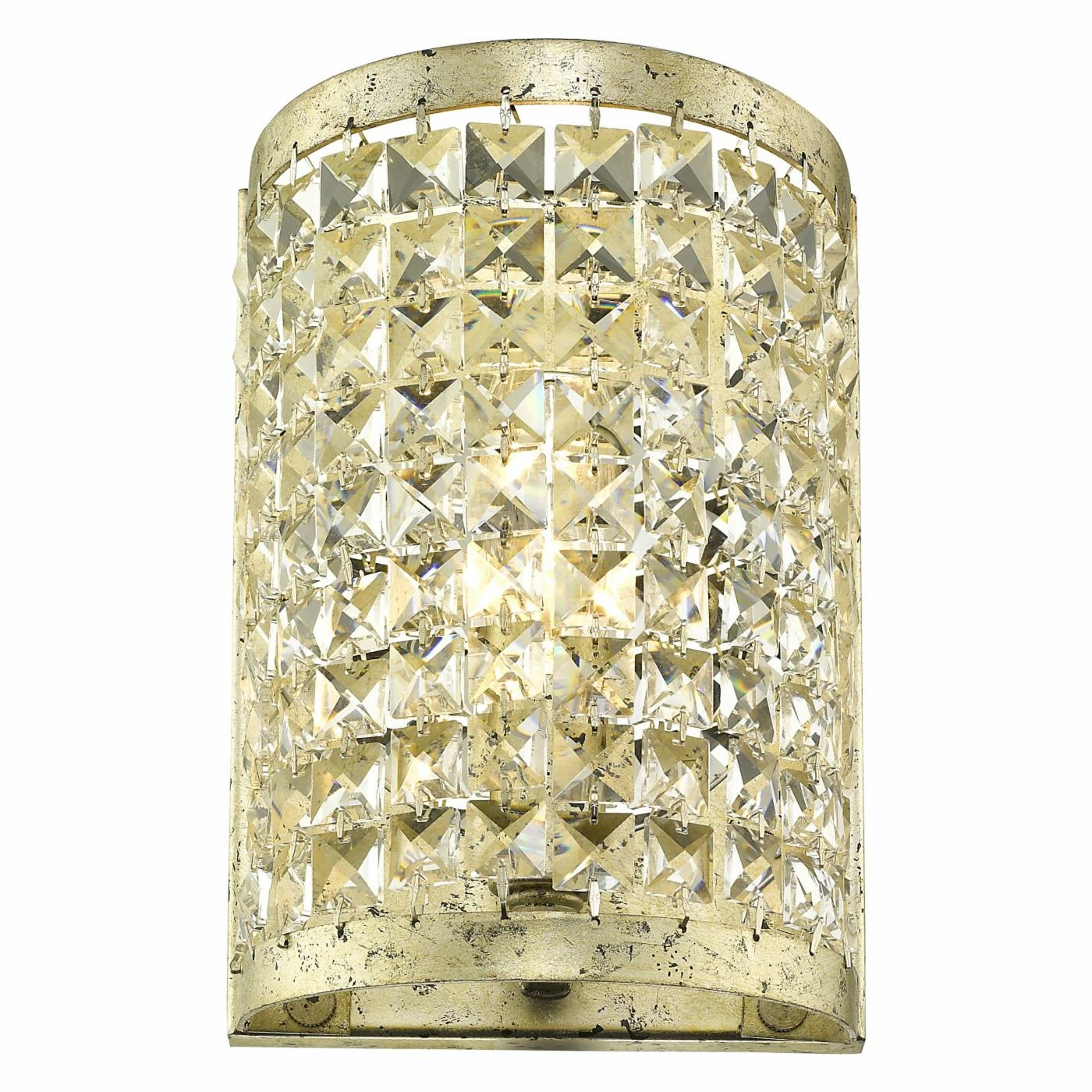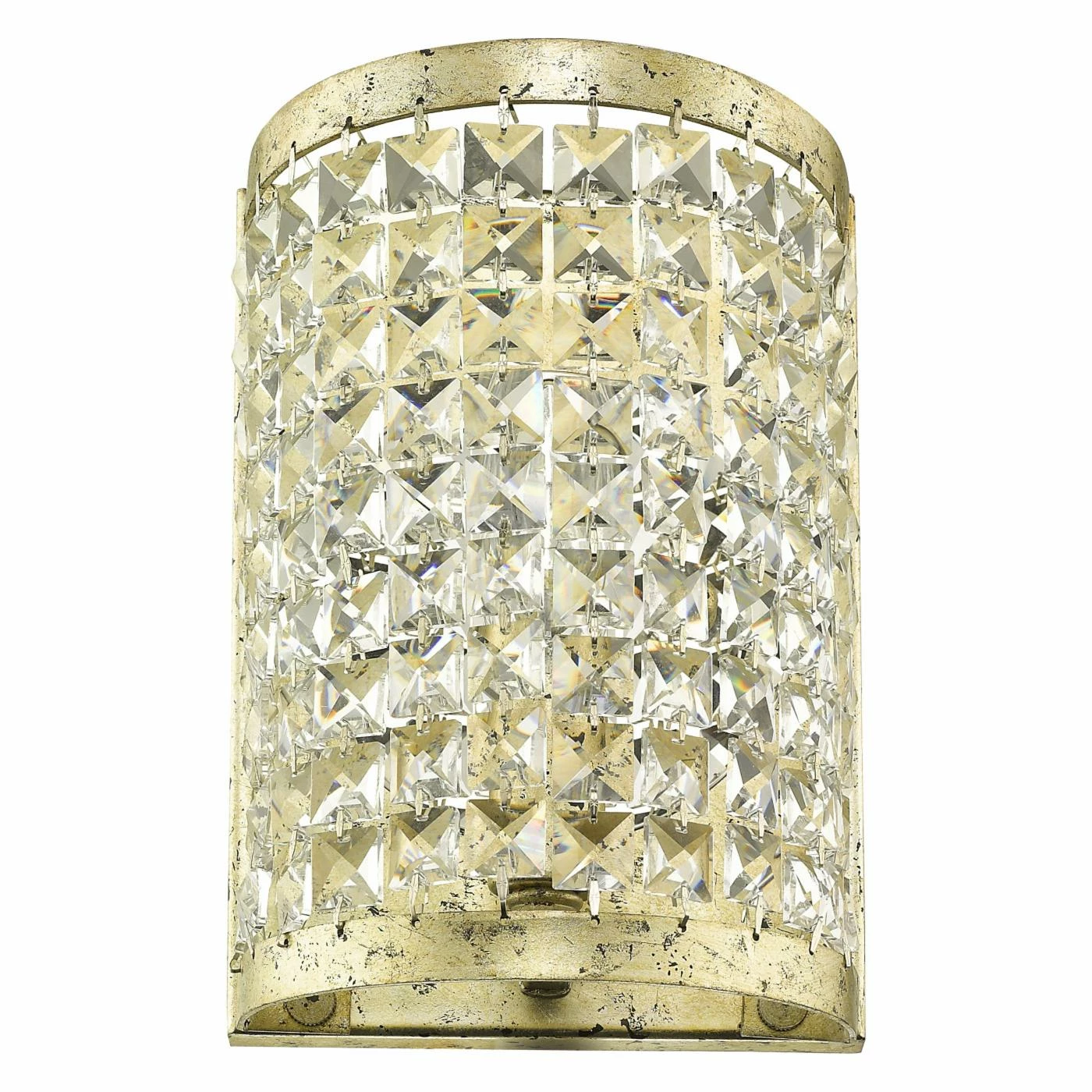 A rounded, textured finished gives dimension and strength to this Livex Lighting Grammercy 50571-28 Wall Sconce. Finished in winter gold, it features numerous clear crystals. This wall sconce requires one 60-watt incandescent bulb (not included).