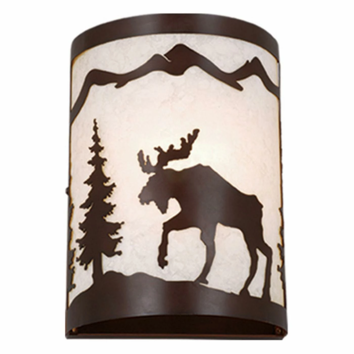 Bring a rustic touch and welcoming light to your hallway with this Vaxcel Yellowstone WS55608BBZ Wall Sconce. Its wilderness scene on the amber flake glass demilune shade shines. This wall scone requires one 100-watt bulb, not included.