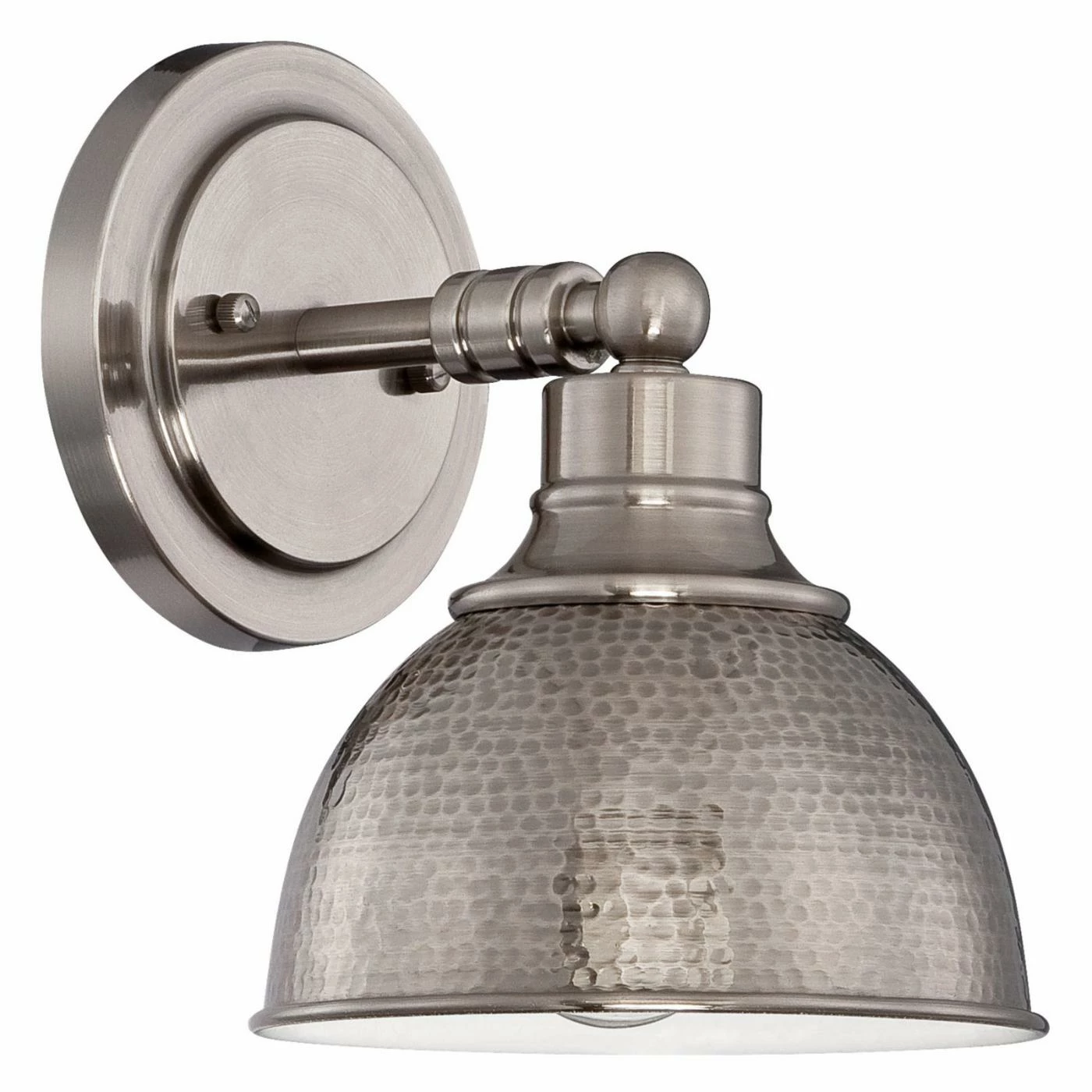 Smooth and hammered metal designs come together to make the Craftmade Timarron 35901 Wall Sconce. This wall sconce requires one 100-watt incandescent bulb (not included).