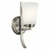 Adorned with traditionally inspired curves, the Livex Coronado 6101 Wall Sconce is going to be a welcome part of any room. This damp-rated fixture is offered with a full range of finish options to complement your particular decor style. The flared, bell-shaped shade of frosted glass covers a single, 100-watt medium-base bulb. This fixture can be mounted in an upward- or downward-facing position.