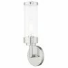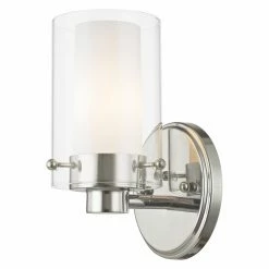 That uptown style is on display in the desirable design of the Livex Manhattan 1541 Wall Sconce. The metal body features a full range of finish options, but each one is complemented by the double-layer shade that sports a frosted shade inside a second shade of clear glass. Inside the frosted shade is a single, 60-watt candelabra bulb to provide the warm transformative light that will make this fixture such a success. This fixture can also be mounted in an upward- or downward-facing position.
