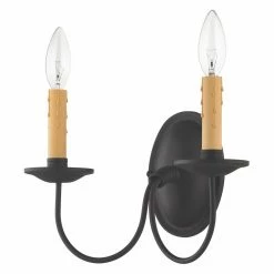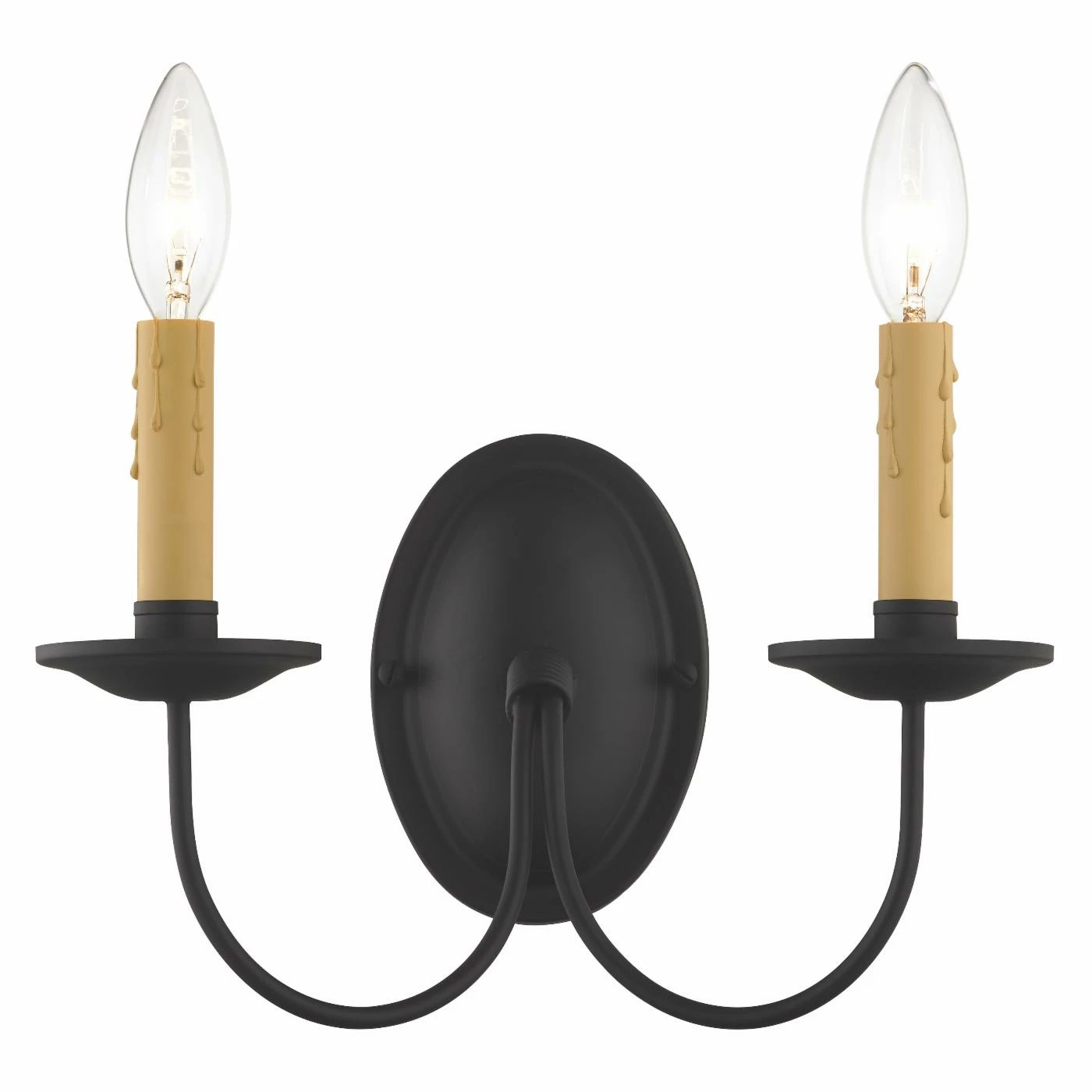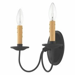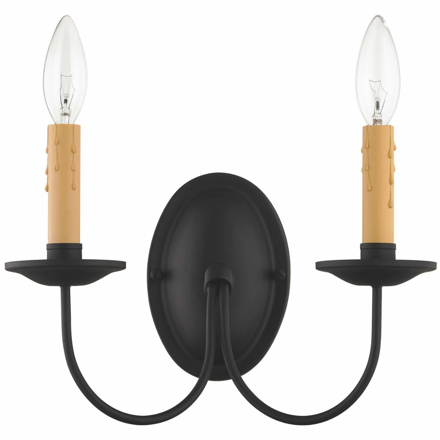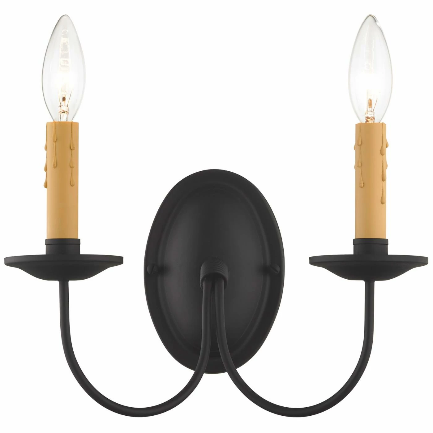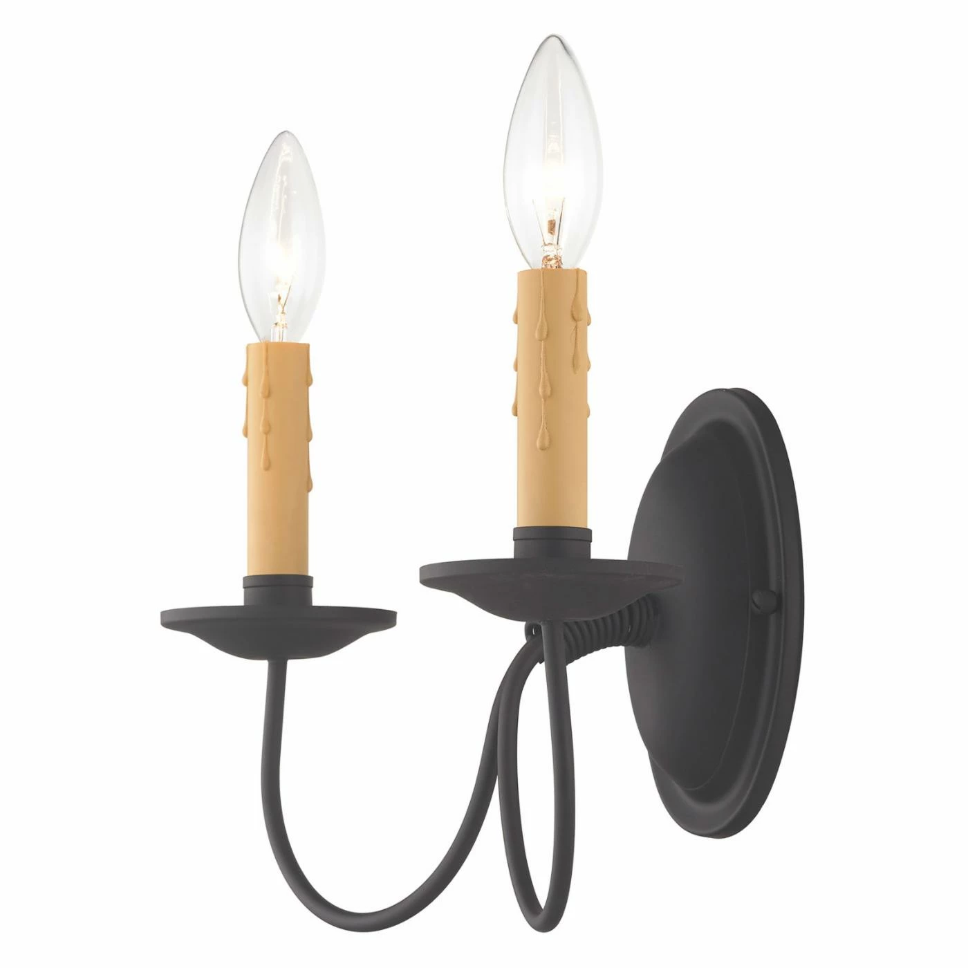 Clean lines, classic elegance, and a streamlined silhouette come together in the Lacey Wall Sconce making it a charming addition to any upscale home. The black-finished wall plate and handlebar offer the perfect foil for the beautiful candle cups, creating a unique lighting fixture for both formal and casual settings. Two 60-watt candelabra base bulbs (not included) add warm, ambient lighting to your hallway or just about any room of the house.