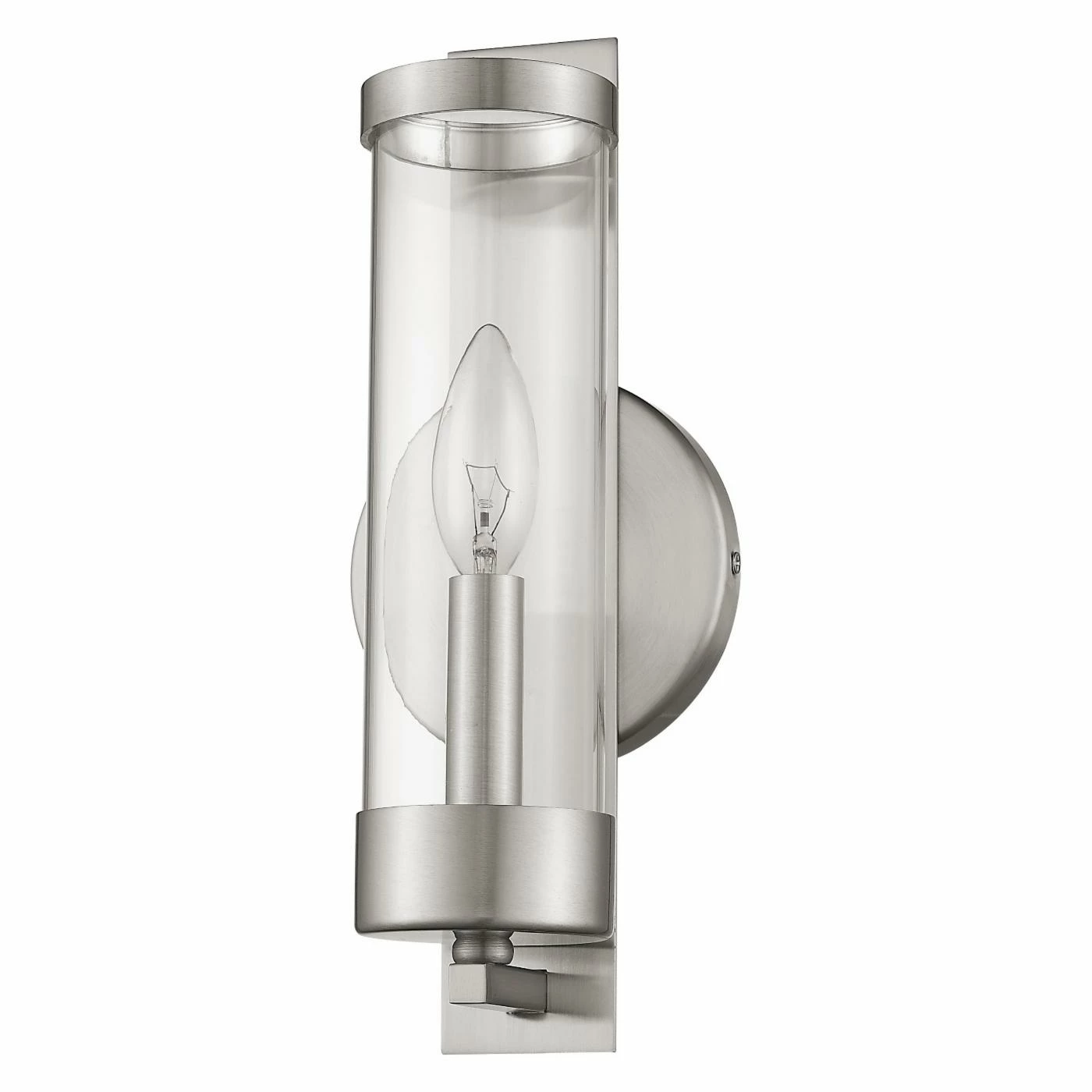 Stunning craftsmanship and smooth details make this Livex Castleton 10141 Wall Sconcea fitting addition to any modern space. The model candle design boasts a steel base that is offered in your choice of available finish. Requires one 60-watt bulb, not included.