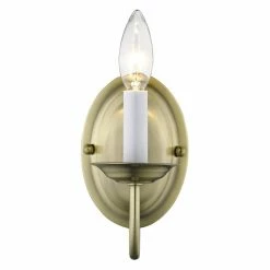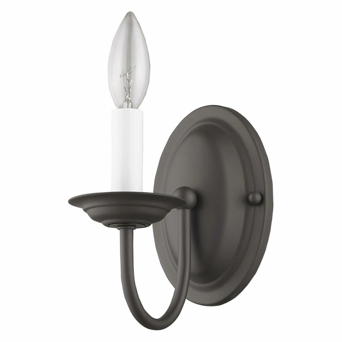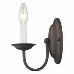 You’ll create a candlelit effect with the Livex Home Basics 4151 Wall Sconce – 4.25W in. – minus the messy wax. Available in a wide array of fashionable finishes, this wall sconce adds classic charm to a hallway, bedroom, and any room that could use a little extra wall lighting. The circular back plate is nice and simple, and the light requires one 60-watt candelabra base bulb (not included).