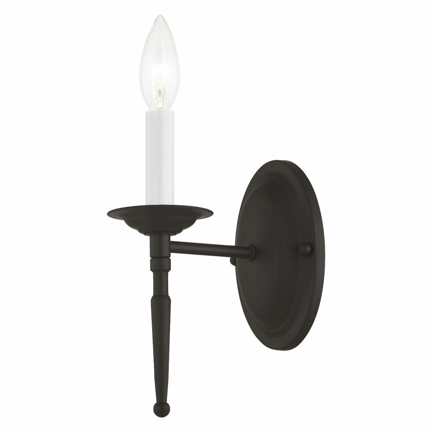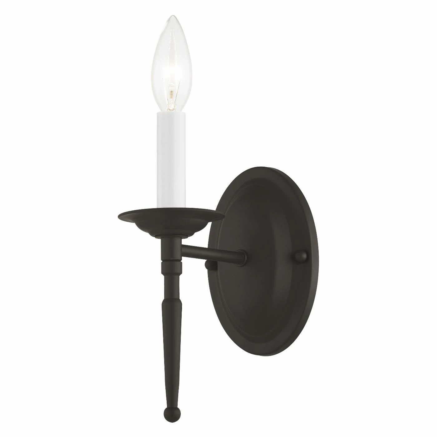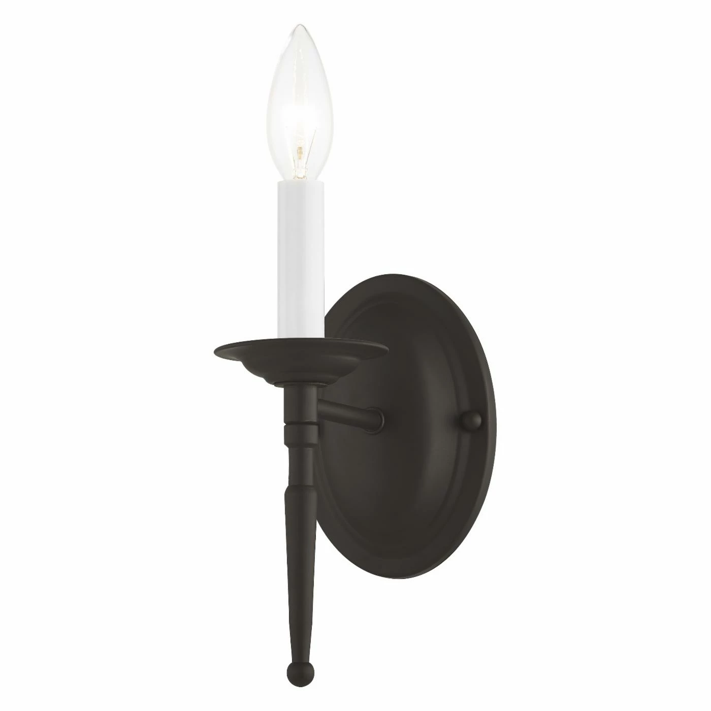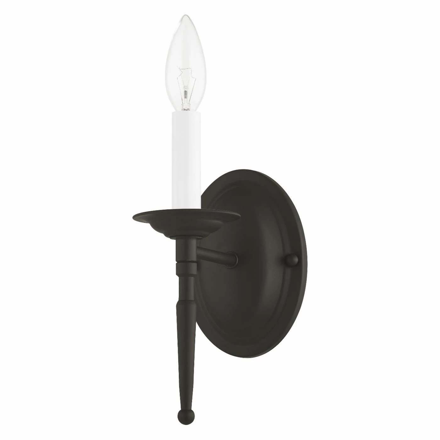 A tapered support elongates the elegant look of the Livex Williamsburgh 5121 Wall Sconce – 4.25W in.. This wall sconce supports a single candelabra bulb and features your choice of fashionable available finish.