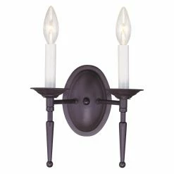 Tall and sophisticated, the Livex Williamsburgh 5122 Wall Sconce – 11W in. adds a lux layer of light to your design scheme. This sconce features tapered style lines with traditional candelabra bulbs.