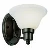 Enhance your foyer, hallway, bath, or other space with the warm glow and attractive transitional style of the Transglobe 2825 Wall Sconce – 7.5W in.. This wall-mounted light features an oval metal backplate with beveled edges. The marbleized glass shade has a classic bell shape and rests on a curved bar for added style and visual interest. Available in your choice of finishes, this indoor light uses one 100-watt medium base bulb, which is not included.