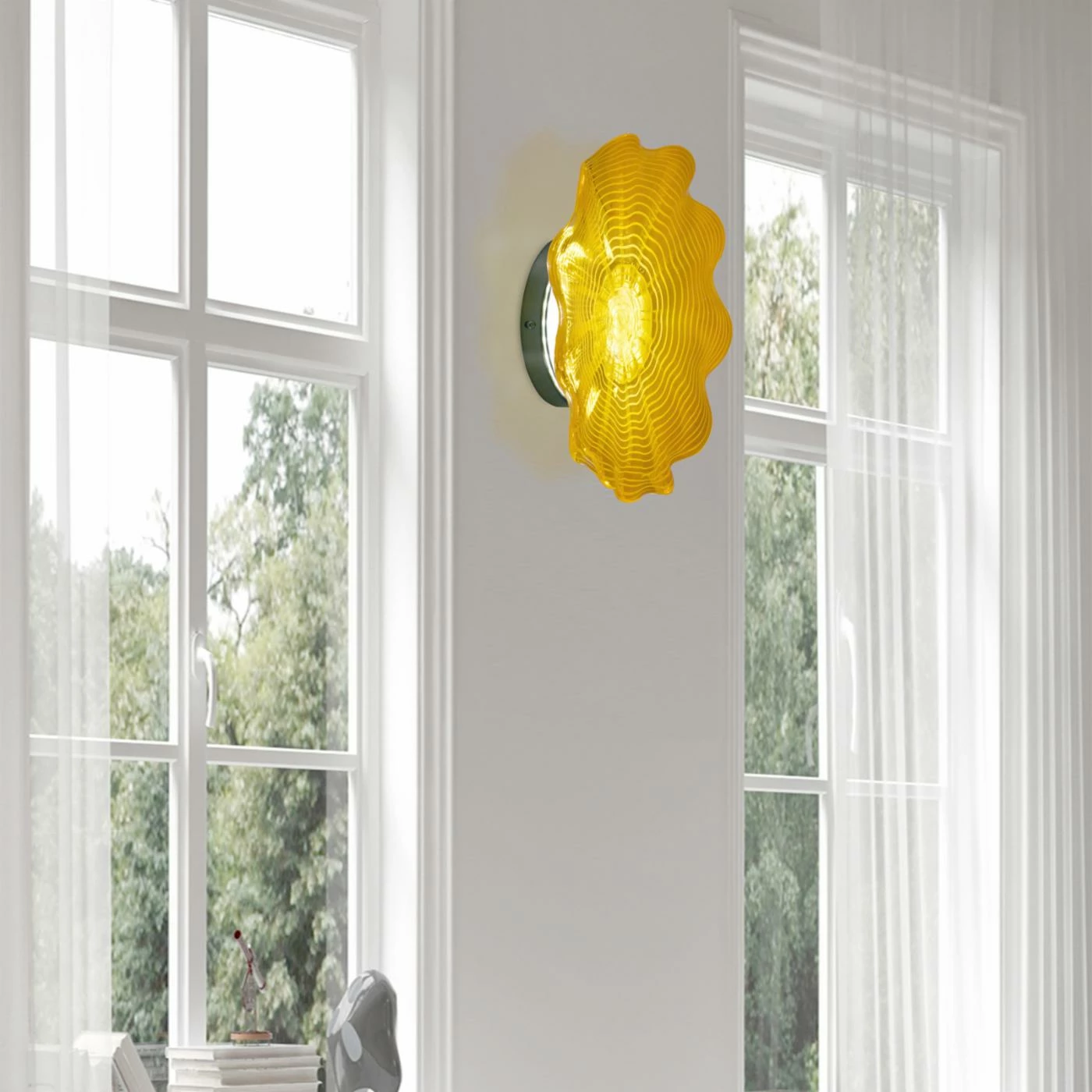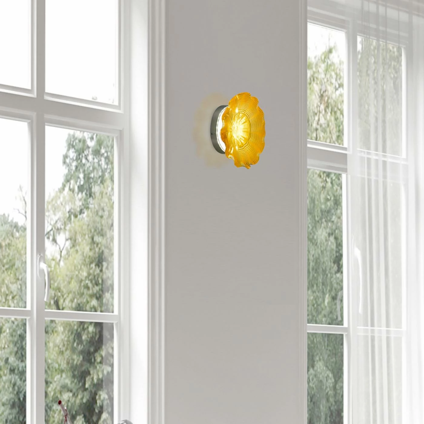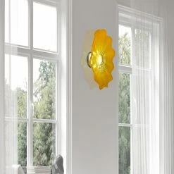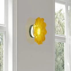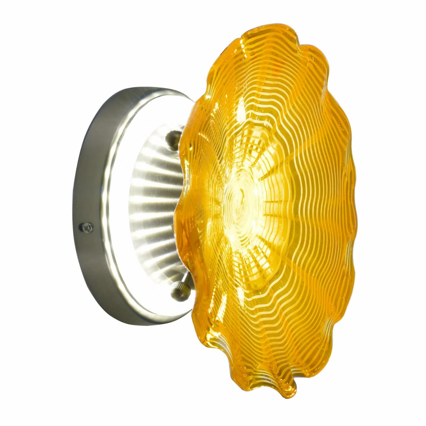 Like a translucent tree ring slice, the Dale Tiffany Tawney Gold LED Art Glass Wall Sconces resounds with organic interest. Subtle concentric rings emphasize the subtle, naturalistic ruffle shape of the art glass disc. Cool, efficient LED technology creates warm lighting for any room in your home. Each hand-blown Favrile art glass disc is a unique work of art.