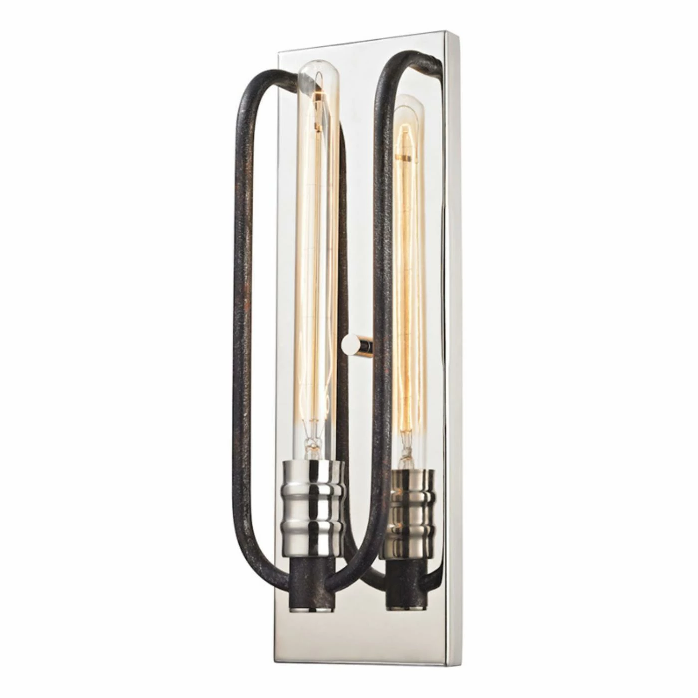 Modeled after the sleek simplicity of a wave shape, this Elk Lighting Continuum 3190 Wall Sconce boasts a polished nickel mirrored black plate along with a curved silver graphite metal fixture. This wall sconce requires one 60-watt incandescent medium base bulb (not included).