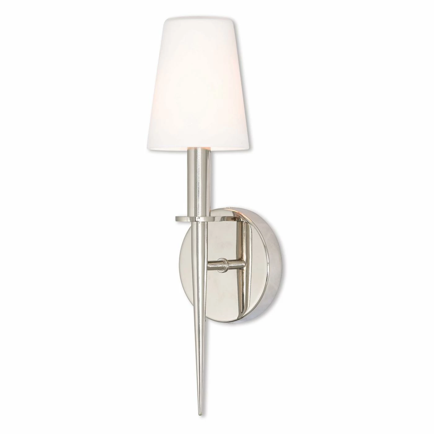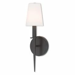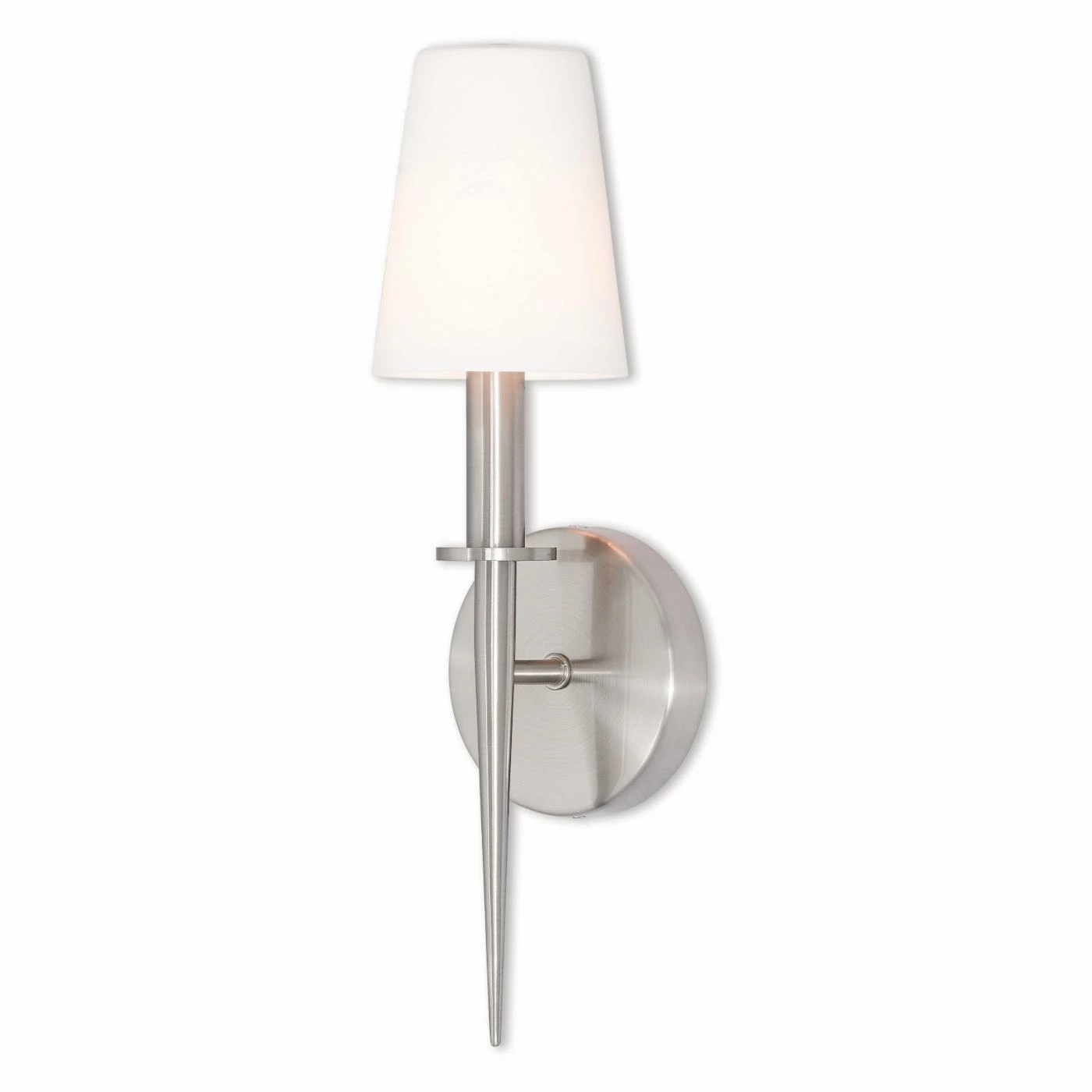Lend decorative flair to a special niche of dΓ©cor with this Livex Lighting Witten 41692 1 Light Wall Sconce. This wall sconce is constructed from high-quality steel and features a distinctive hand blown glass opal shade that brims with sophisticated appeal. Select from our finish options when placing your order.