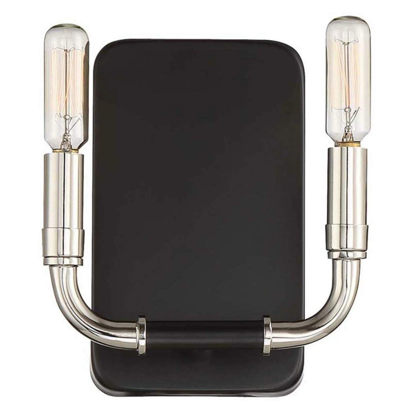 The industrial-chic Minka Lavery Liege 4062 Wall Sconce brings light and modern warehouse style home. This sconce features a curved rod fixture customized by your choice of available finish. It requires two 60-watt T8 bulbs (included).